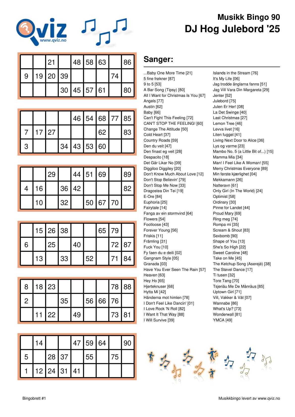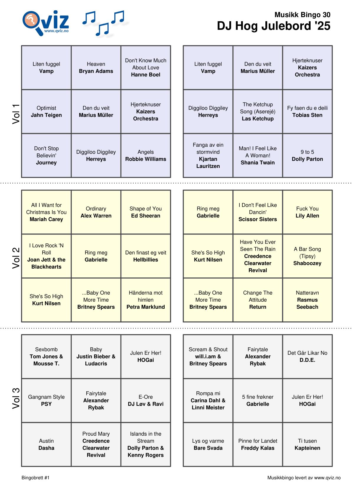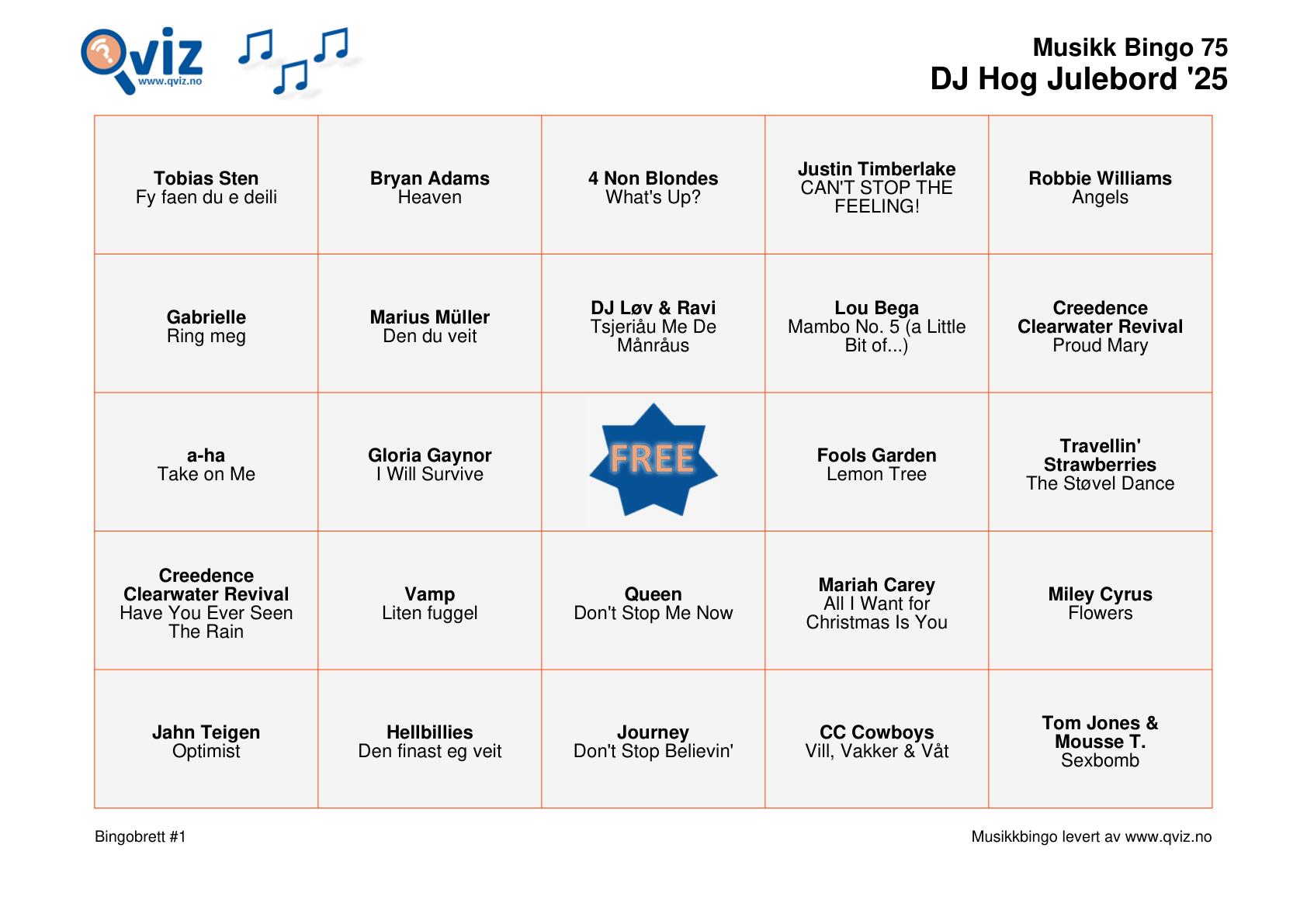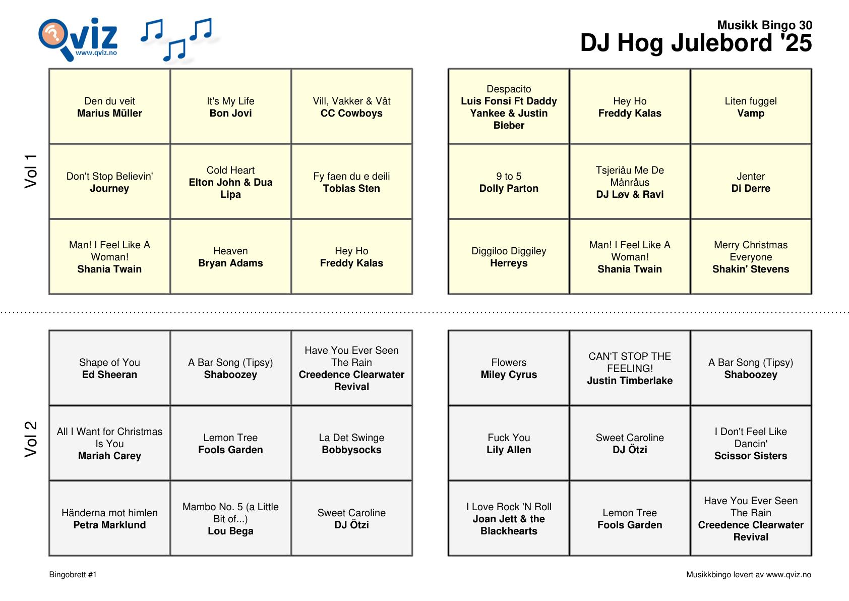 Løft julebordet med DJ Hog Julebord ’25 – en musikkbingo satt sammen, finpusset og brukt av DJ Hog selv. Denne varianten er testet i partysettinger og byr på god stemning, kjente låter og allsang fra første sang.
