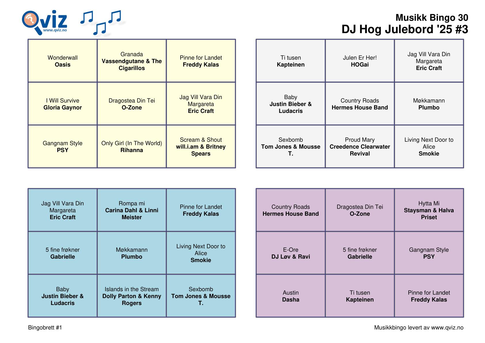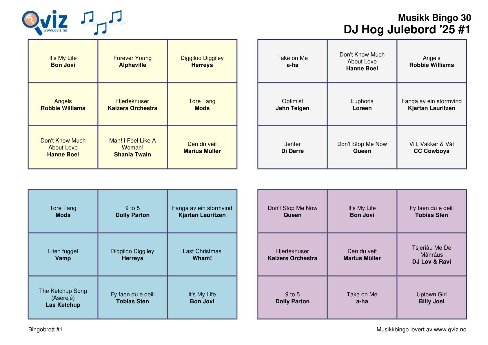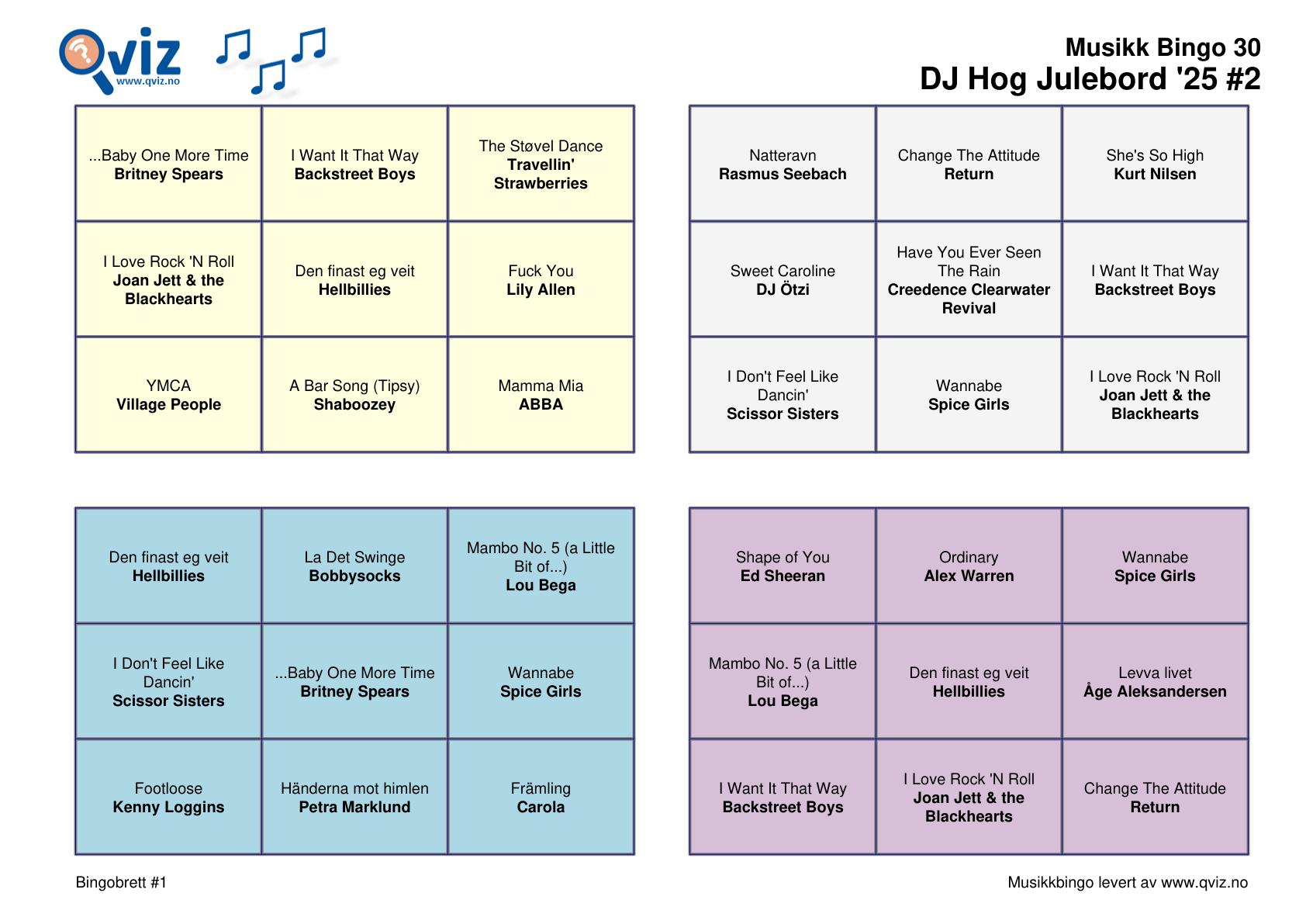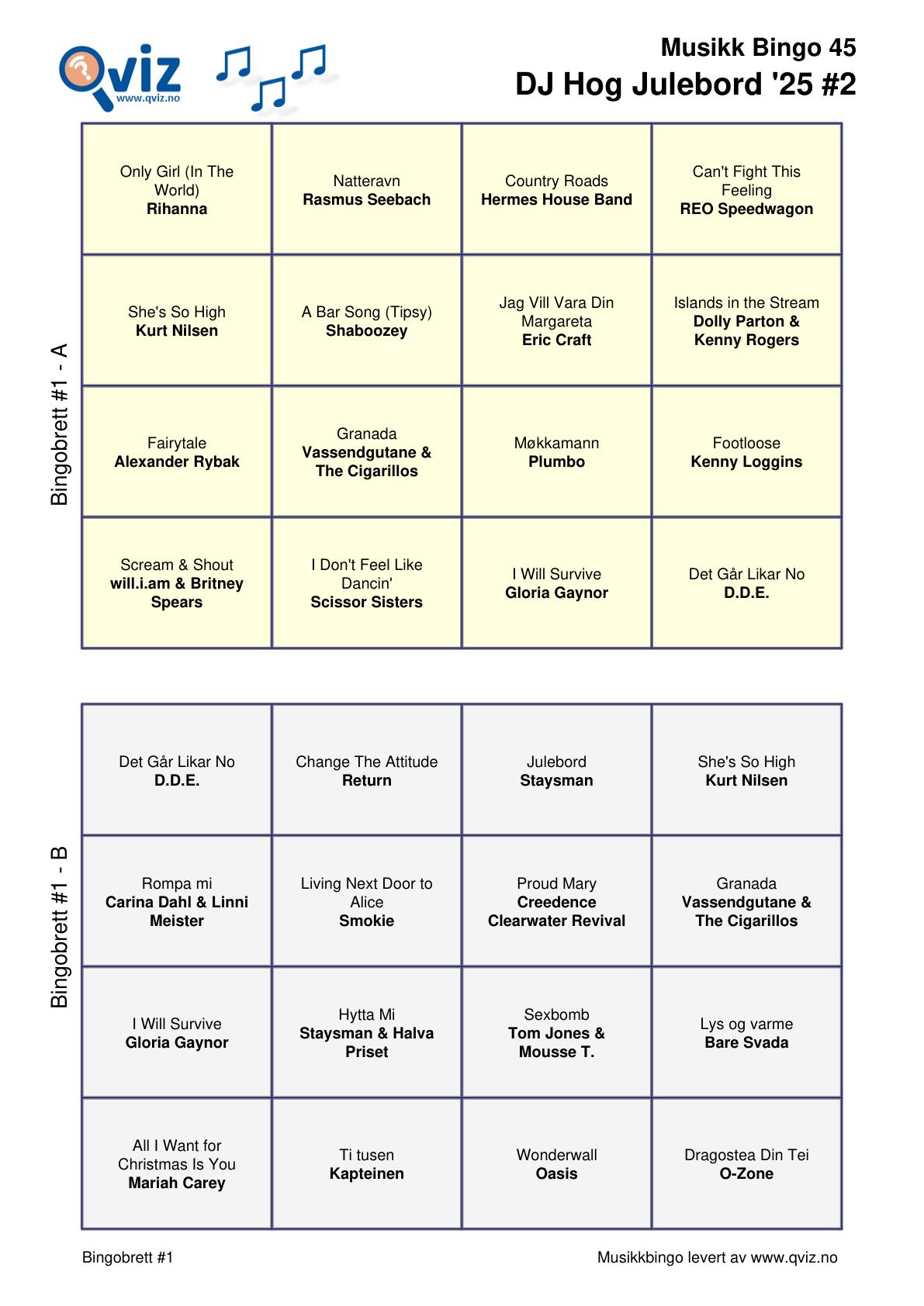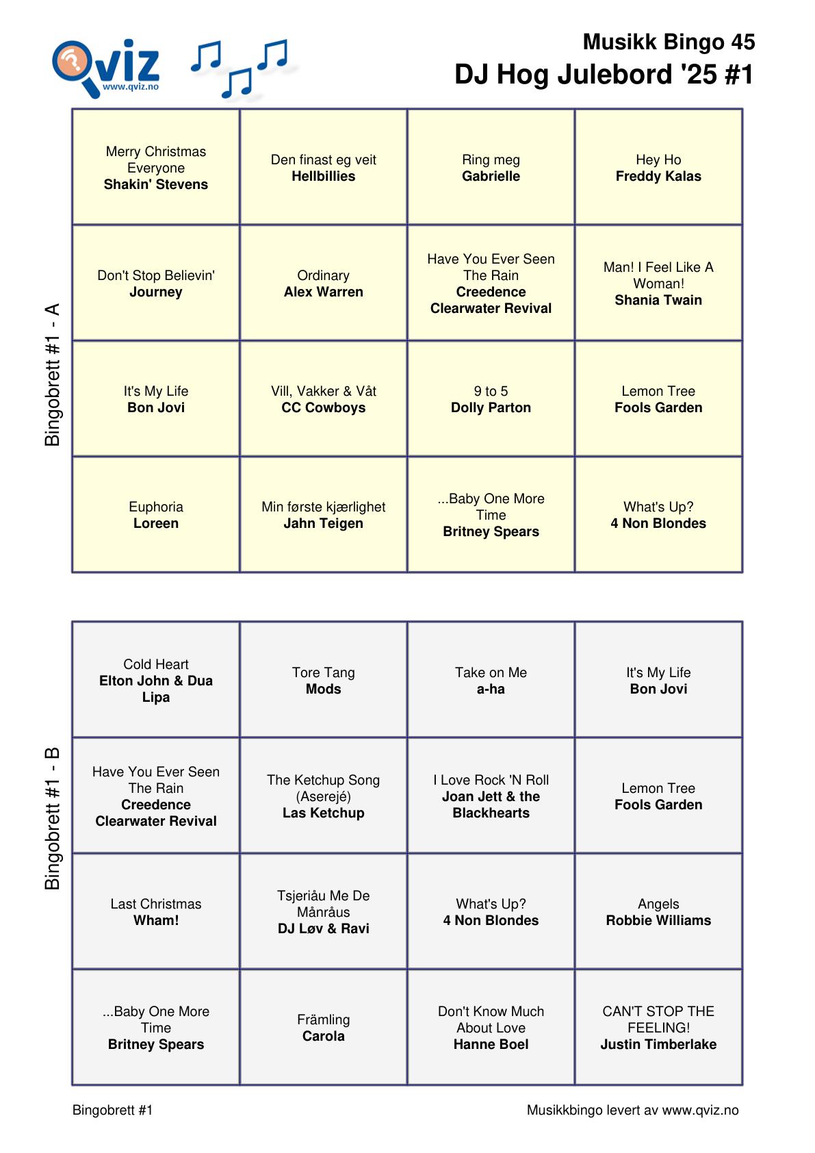 Løft julebordet med DJ Hog Julebord ’25 – en musikkbingo satt sammen, finpusset og brukt av DJ Hog selv. Denne varianten er testet i partysettinger og byr på god stemning, kjente låter og allsang fra første sang.